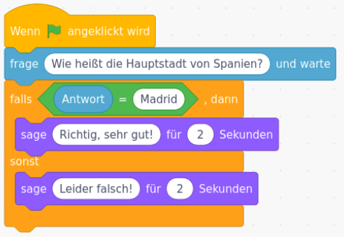 Erweitere das Quiz so, dass noch drei weitere Fragen gestellt werden!