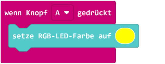 Statt A können wir durch Klick auf den weißen Pfeil auch B oder A+B auswählen. In den Block können wir weitere Blöcke einfügen, die ausgeführt werden sollen, wenn der Anwender die entsprechenden Tasten drückt. Unser Programm startet also nicht sofort, sondern erst wenn das Ereignis eintritt, dass die entsprechende Taste gedrückt wird (s. Beispiel 1).