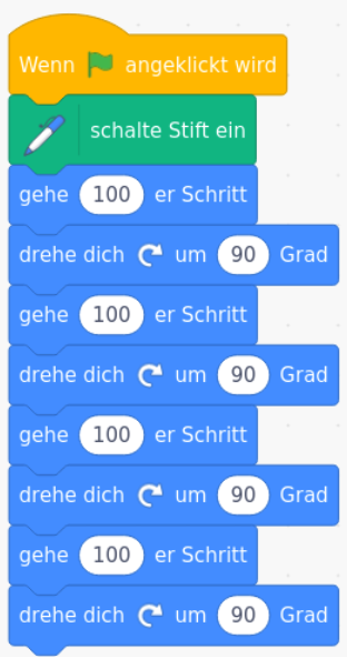aus der Kategorie Steuerung verwendest, um das Skript zum Quadrat-Zeichnen zu verbessern. Erweitere dann dein Skript dahingehend um