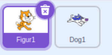 der der Katze folgt. - Unten rechts kannst du zwischen den Figuren hin- und herschalten, um das Skript des Hundes zu bearbeiten: